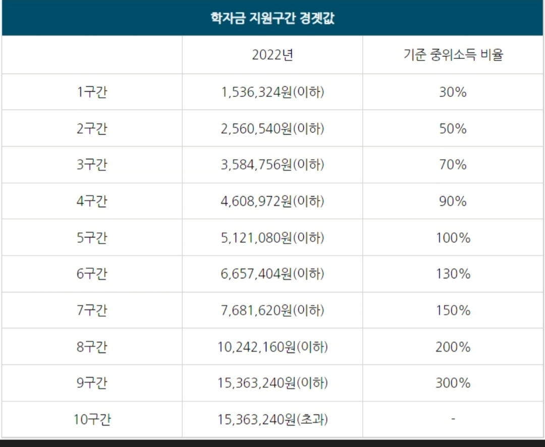 ▶국가장학금 소득분위 기준