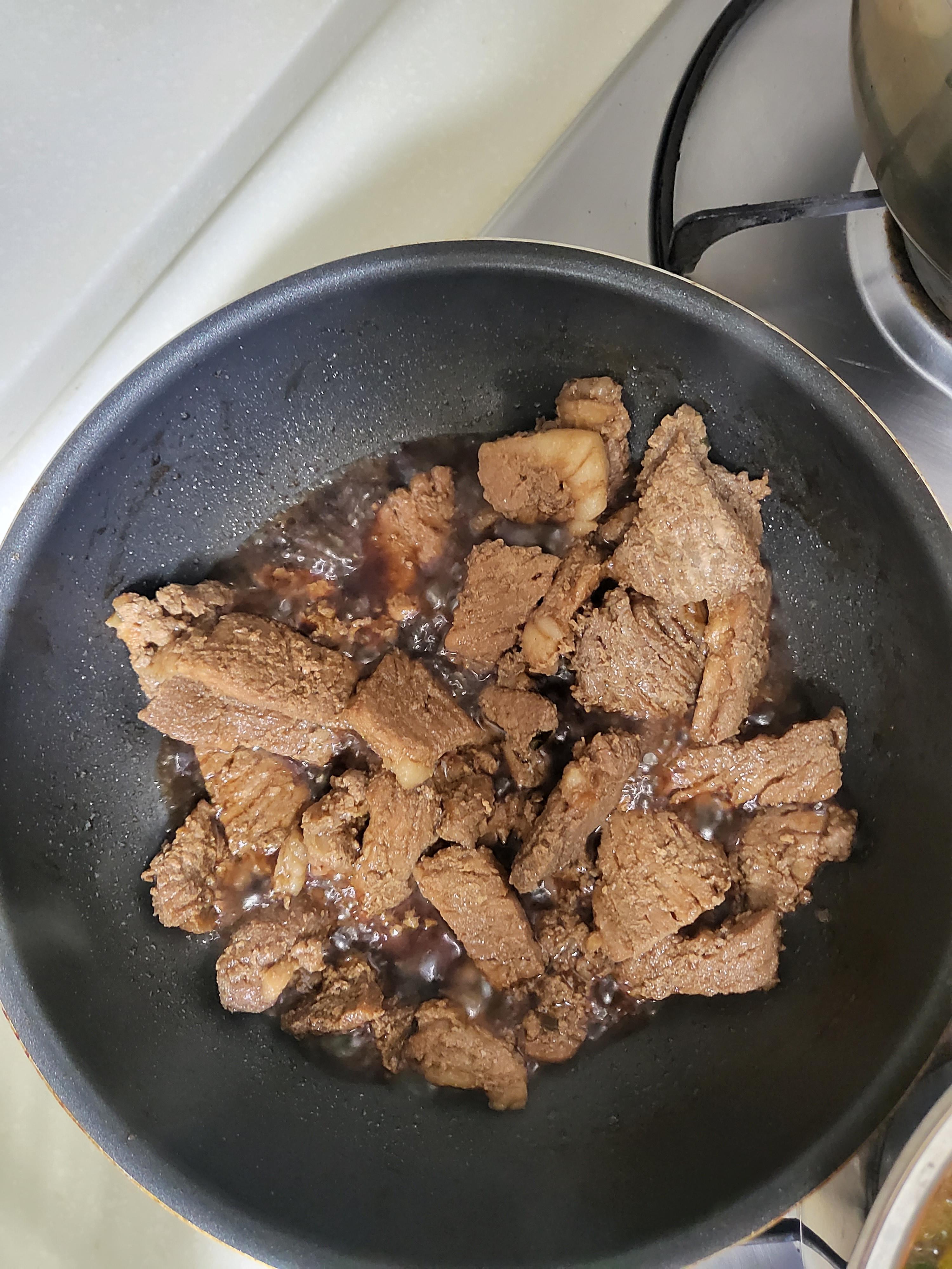 강한불로 조리하다가 반 쯤 익었을 때 중간~약불로 불을 낮춘 후 충분히 조려 먹었습니다.