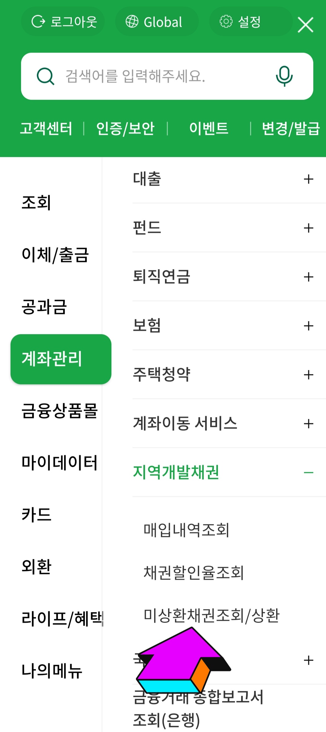 계좌관리 지역개발채권 미상환채권조회→