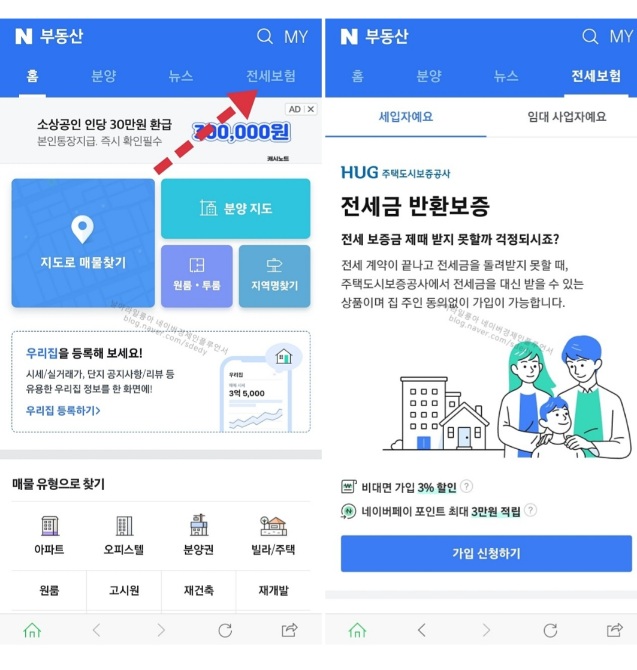 네이버 전세보증보험 가입방법 (날아라 일룡아 블로그 참고)