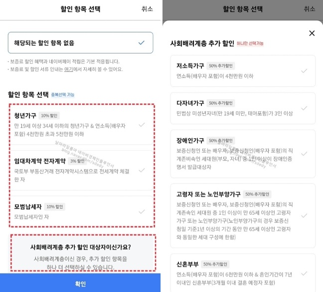 보증료 할인받기 위해 해당사항이 없는지 체크해 봅니다.