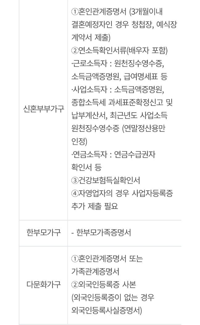 ⑧전입세대열람내역서에 신청인 외 다른 세대의 전입내역이 없어야 합니다.