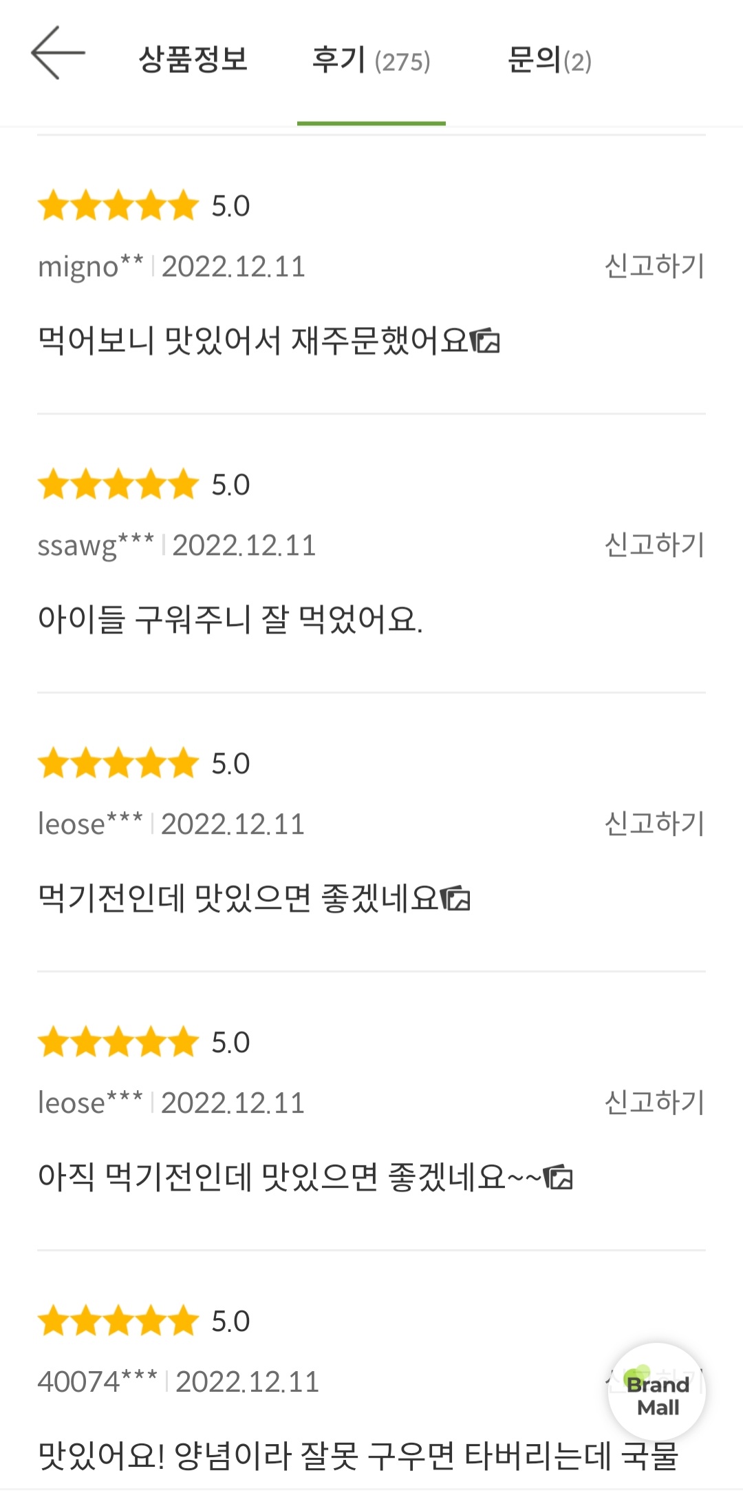구매후기는 275건으로 재구매 하셨다는 분들도 많습니다.
