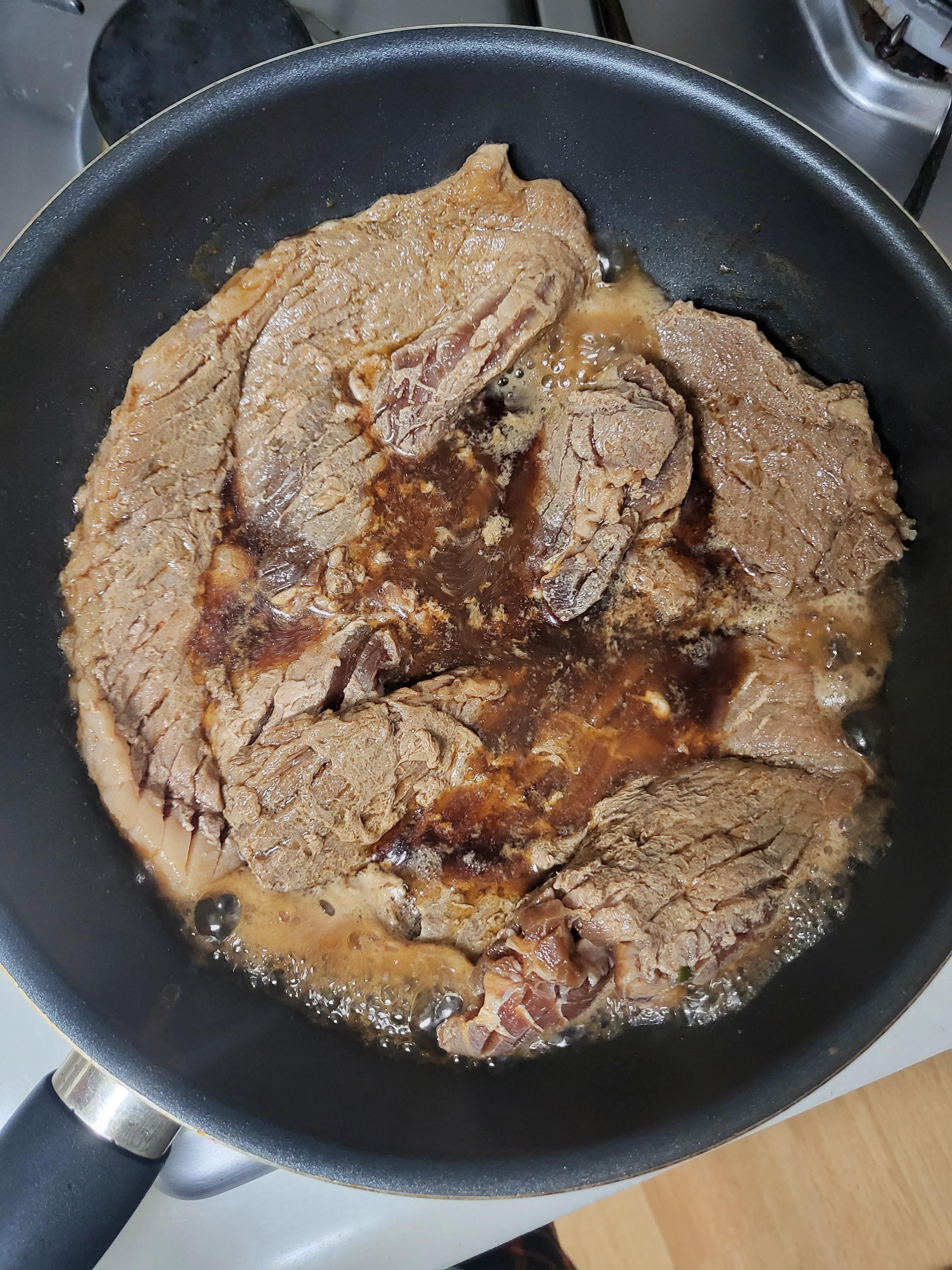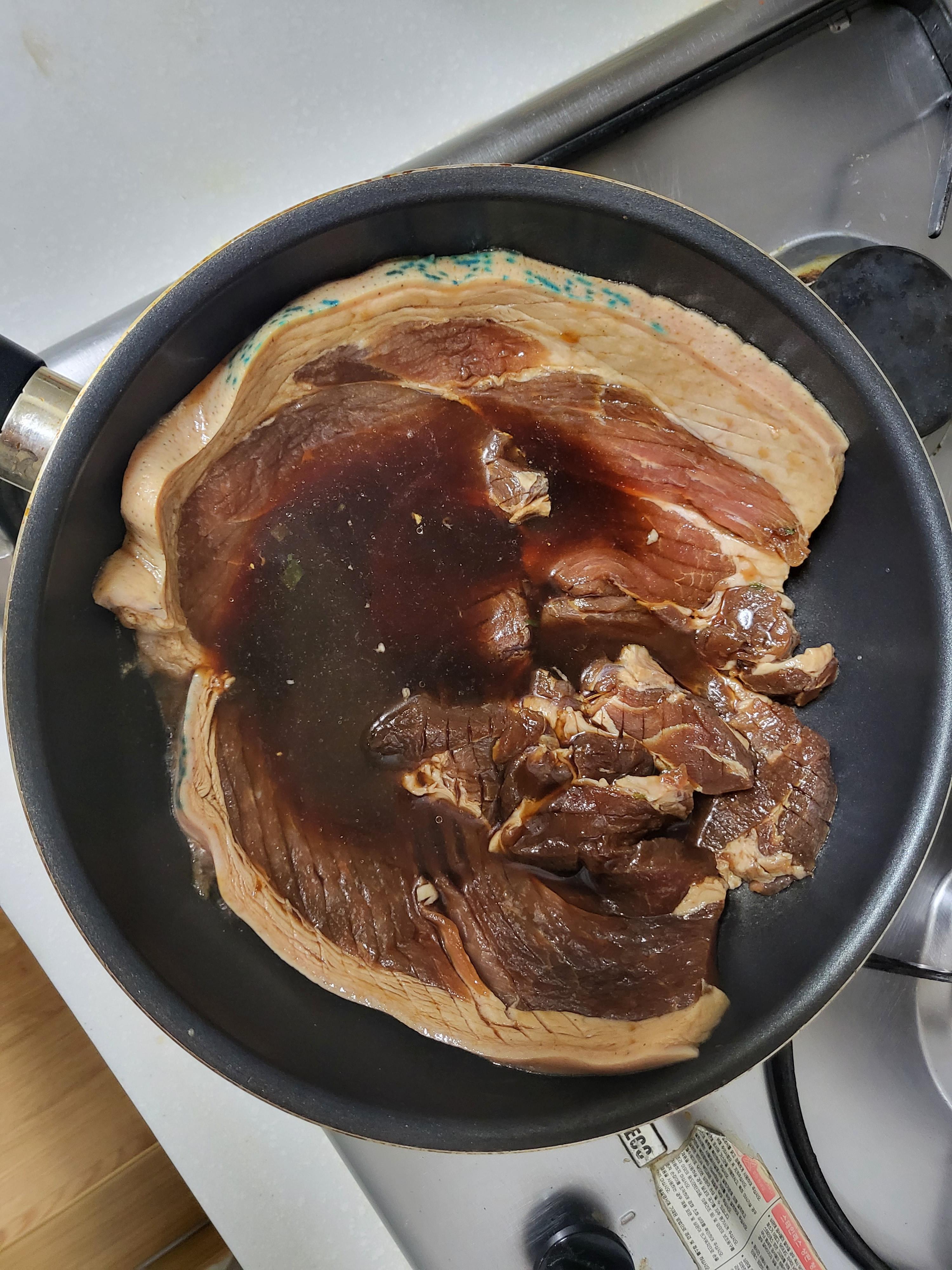 보통의 방법으로 후라이팬에 고기를 넣고 국물을 조금만 부어 익혀먹는 구이방법이 있습니다.
