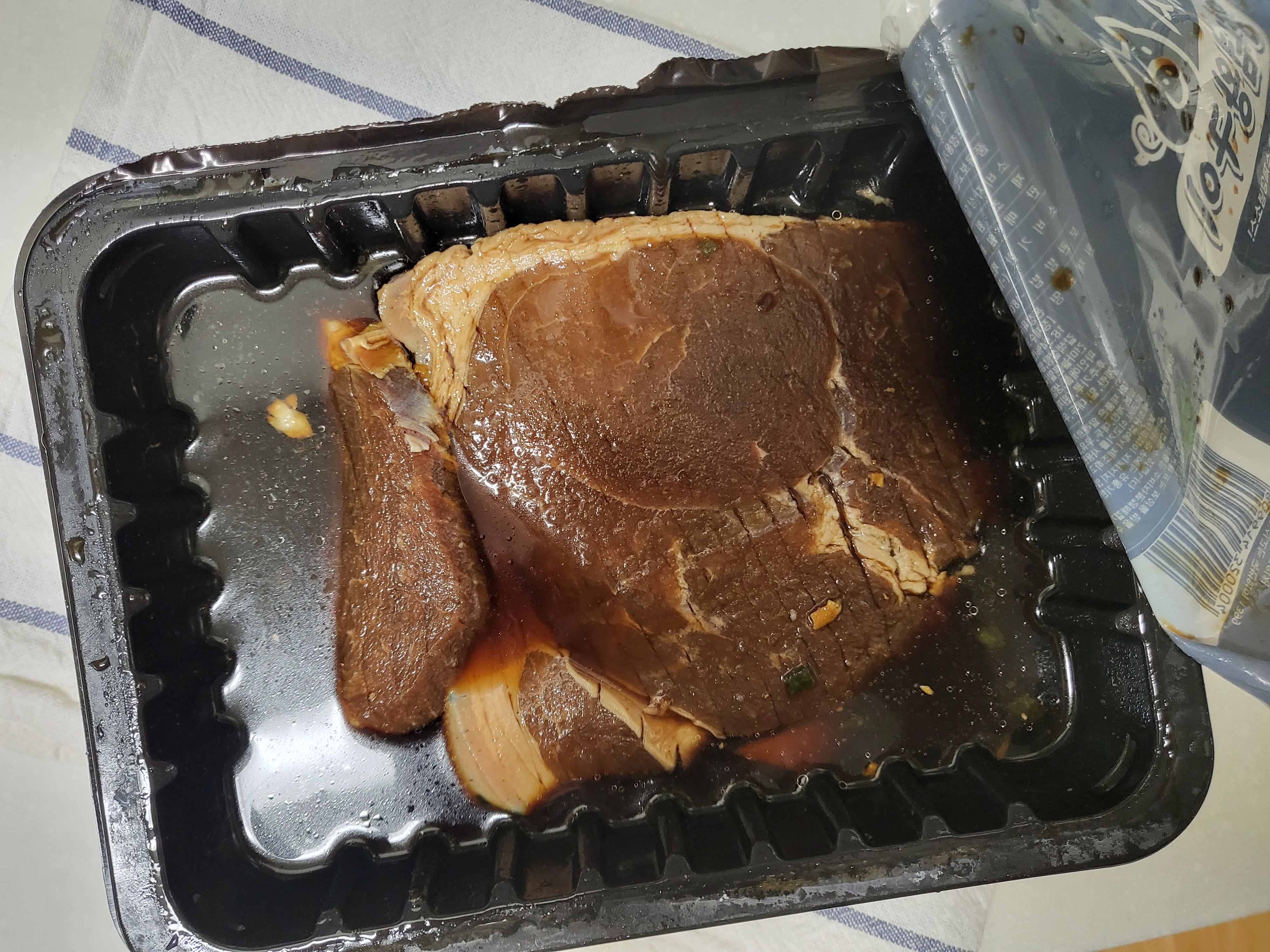 고기부분에 도장이 찍혀 있는 부분이 있어서 저는 그 부분은 잘라내고 먹었습니다.