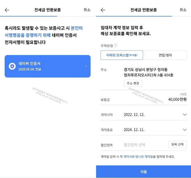 네이버 전세보증보험 가입방법 (날아라 일룡아 블로그 참고)