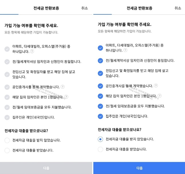 보증료 할인받기 위해 해당사항이 없는지 체크해 봅니다.